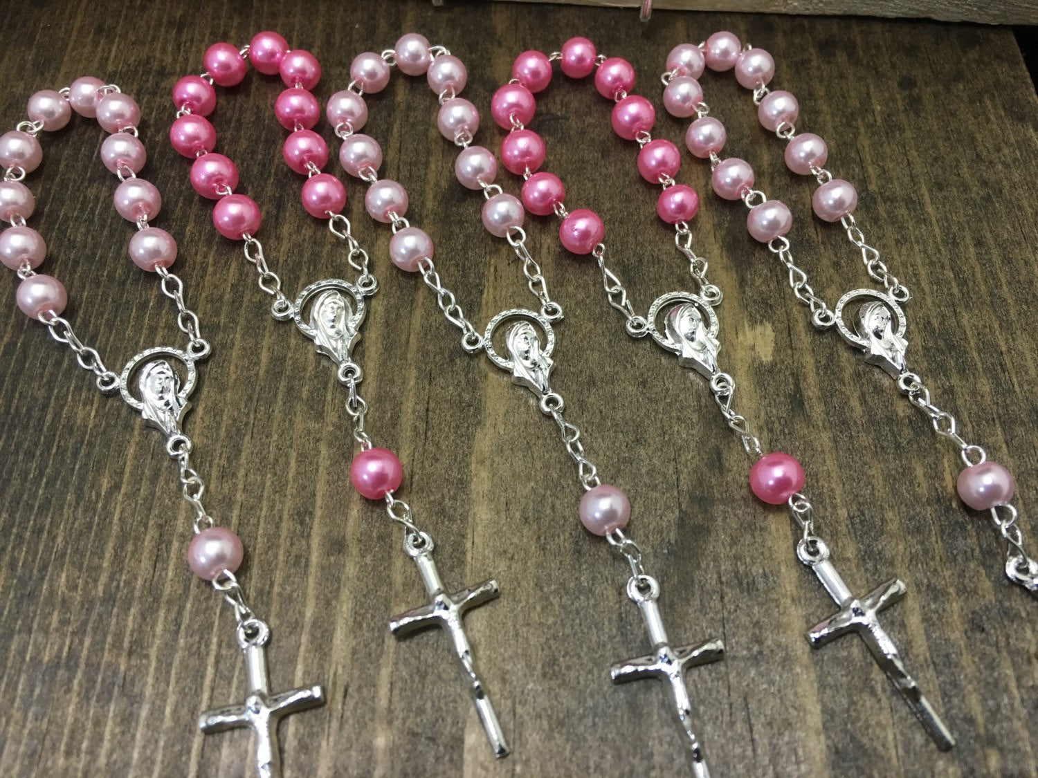 35 pcs Glass Pearl Rosaries/Mini Rosaries/Decade Rosary/First communion favors Recuerditos Bautizo/ Mini Rosary Baptism Favors 35 pcs