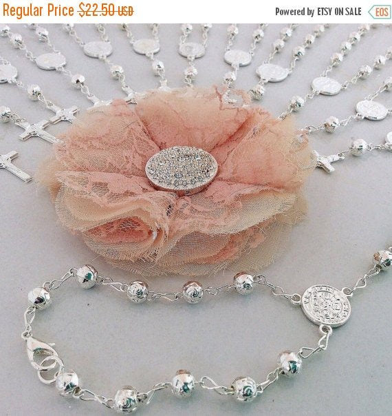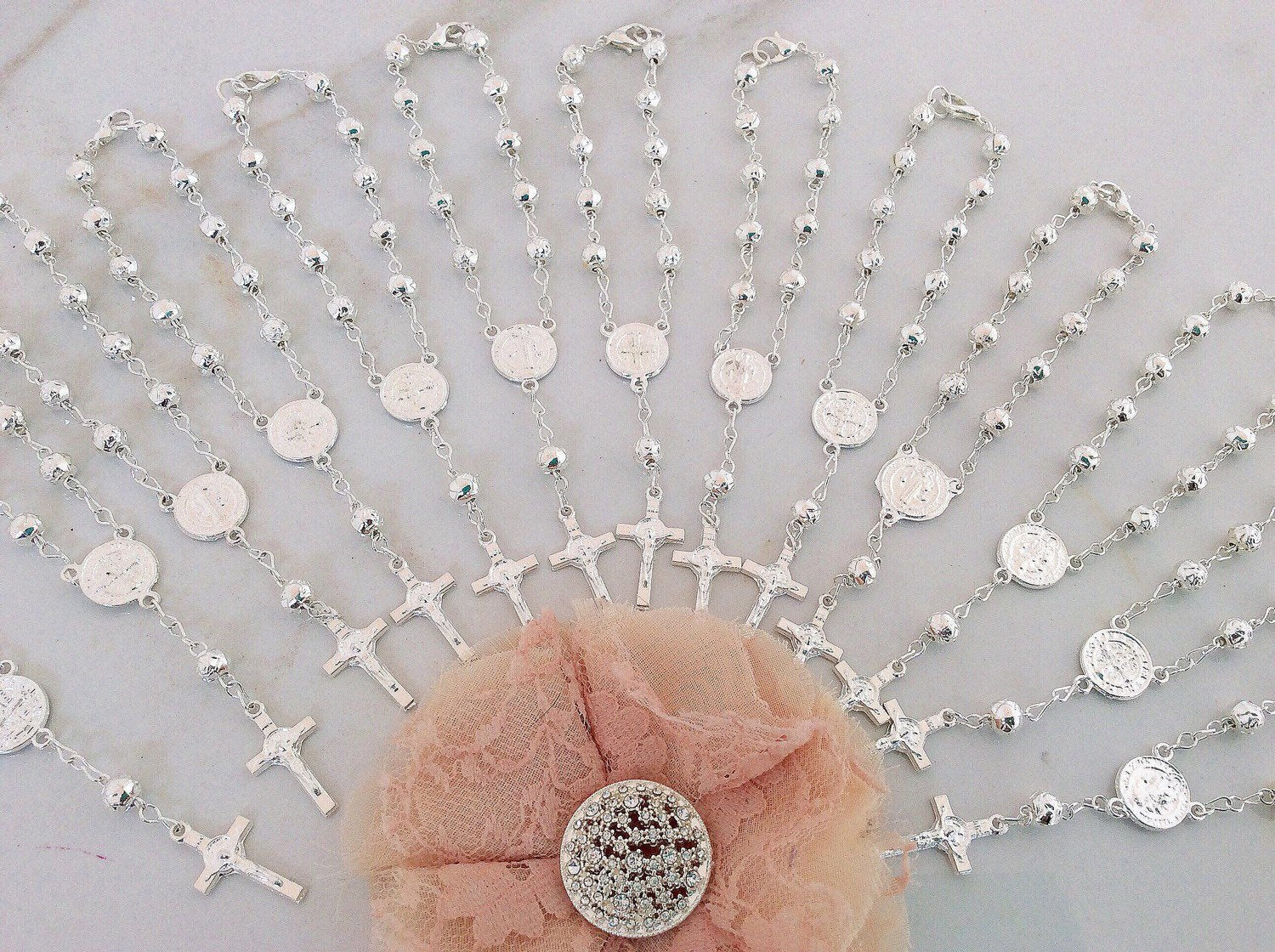 35 pcs st. Benedict clasp rosaries, Bracelet Rosaries, Car mirror rosaries, Communion favors, baptism, christening, Recuerditos Bautizo