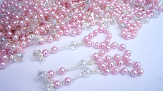 40 pcs Angel Pearl Decade Rosaries, Mini Rosaries, First communion favors Recuerditos Bautizo 40pz/ Mini Pearl Rosary Ba