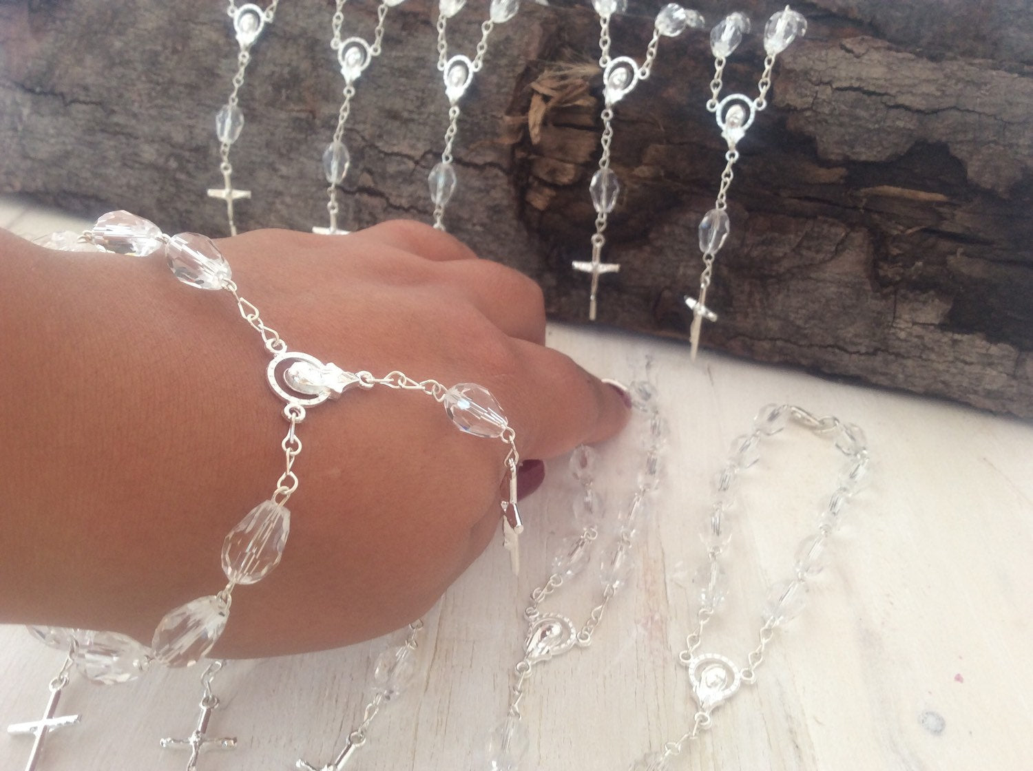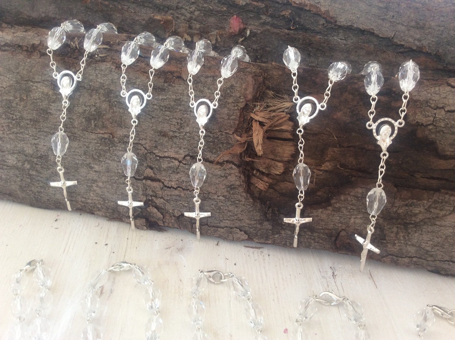Decade Rosary Baptism Favors 40 pcs all CRYSTAL beads and Silver cross/