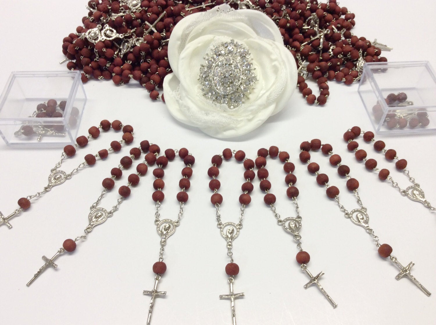 40pcs rose scent mini rosaries favors Wedding/baptism Favor/Wood Bead Rosaries/Wood Mini Rosaries/Decade Rosaries/Rosary Favors