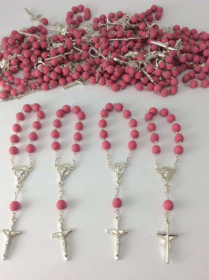 60 pcs baptism favor mini rosaries with fragrance of roses.
