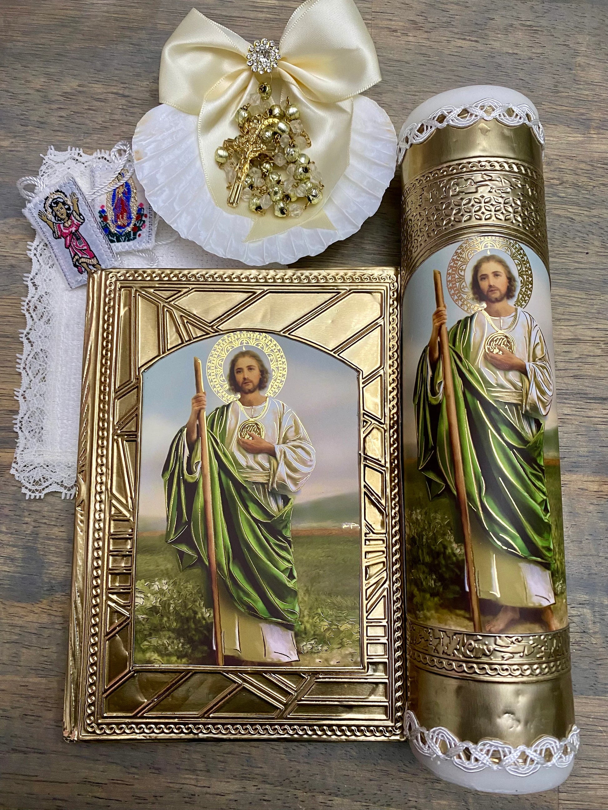 Baptism Saint Jude candle set, velas de bautizo San Judas, velas para communion, communion candles, English candle sets, spanish candle sets