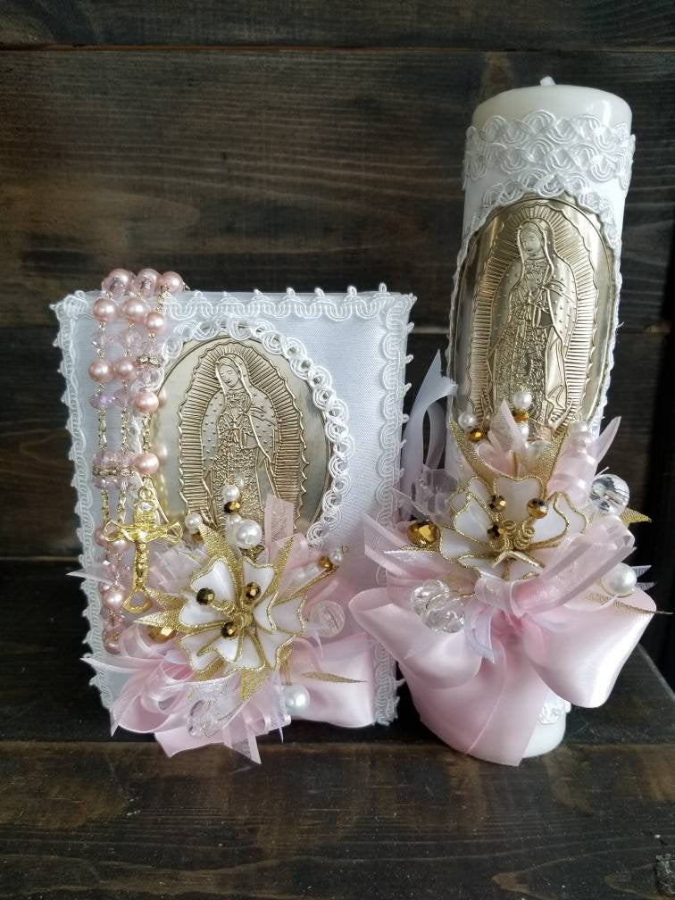 Baptism candle set Girl/Virgen de Guadalupe/Communion Candle Set/Vela de Communion/Vela de Bautizo