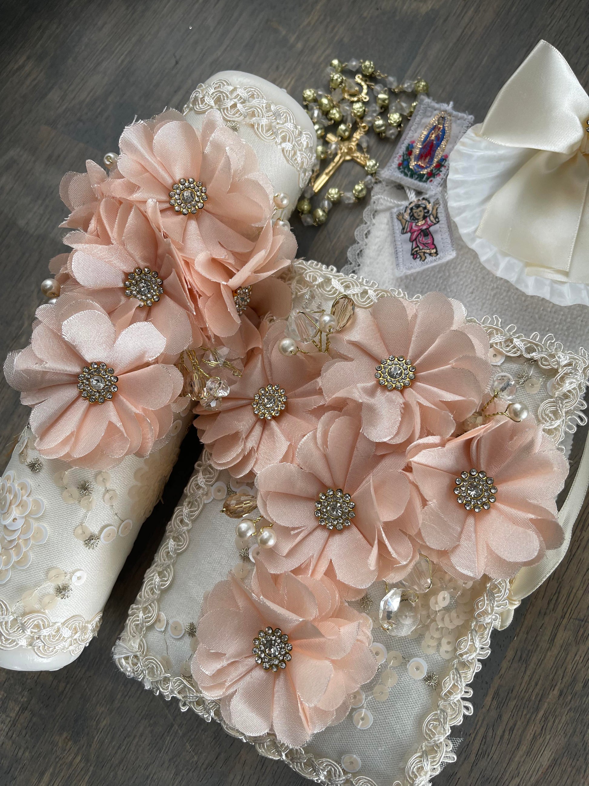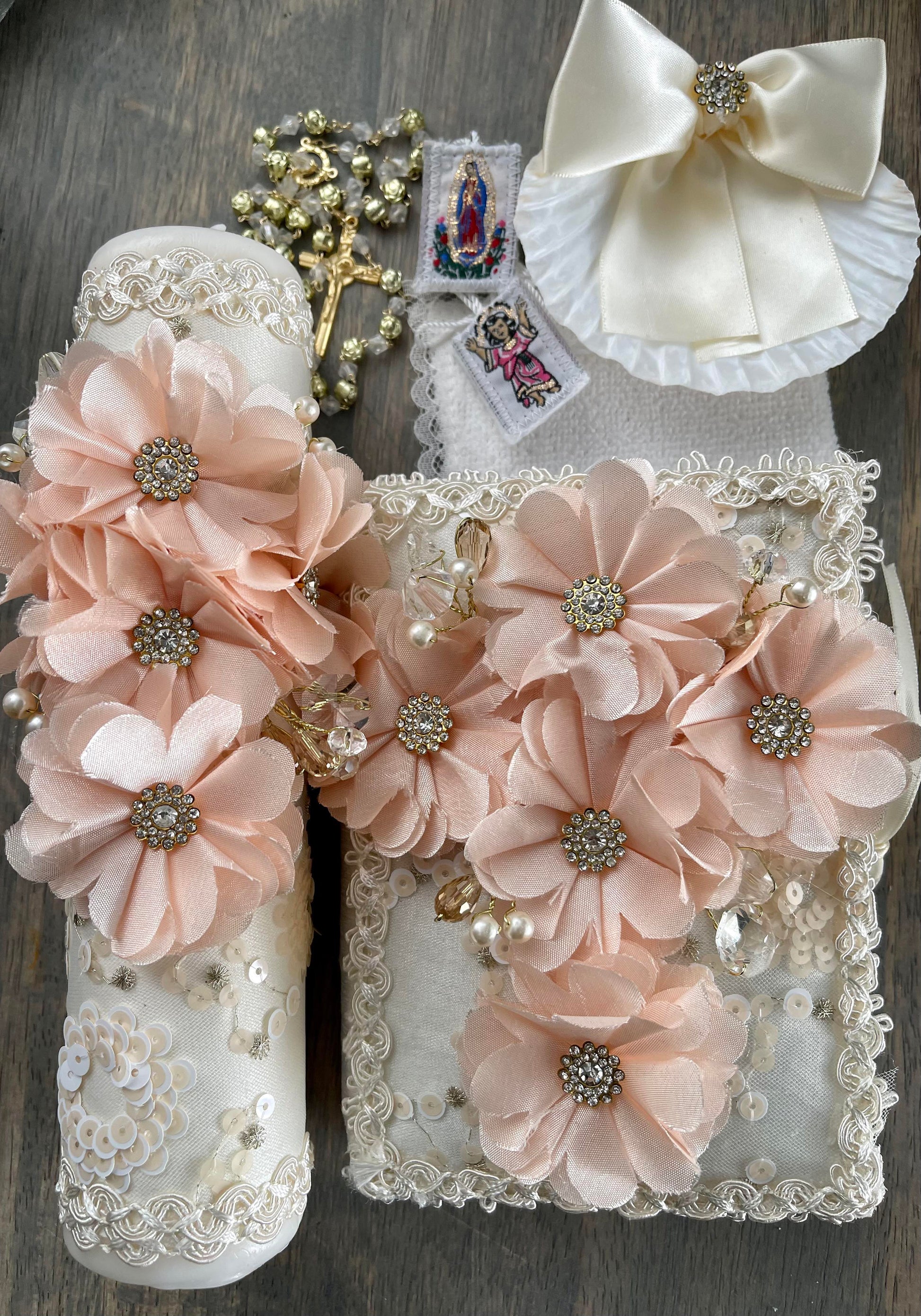 Baptism blush candle set, velas de bautizo, velas para communion, communion candles, English candle sets, spanish candle sets (Copy)