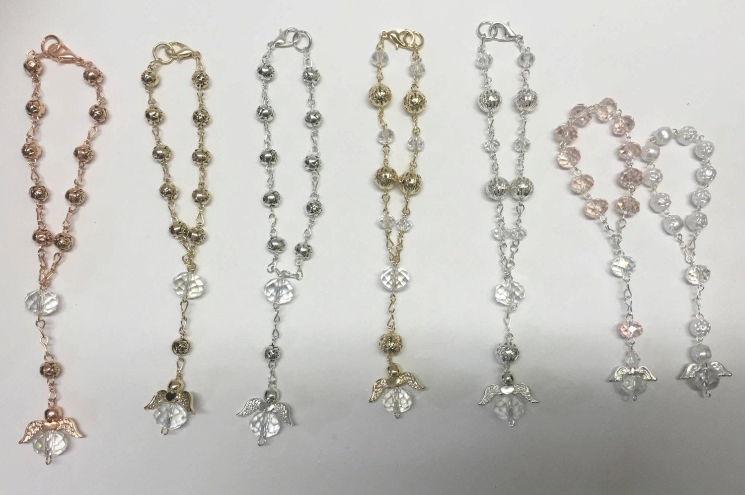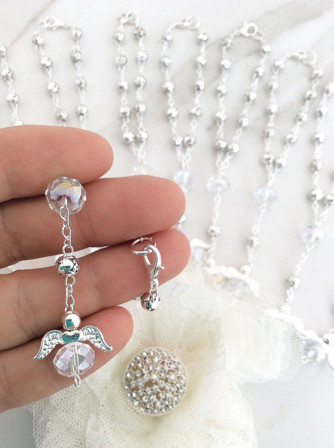 35 Bracelet size car mirror beads, Silver with Angel Charm