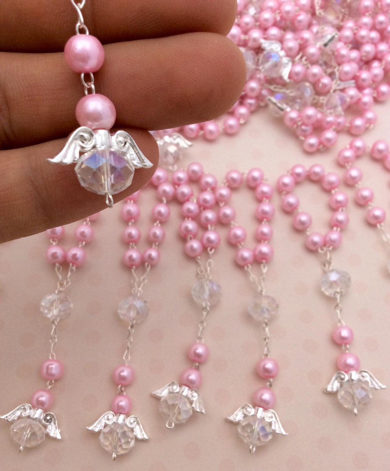 baptism favor, Rosary beads, baptism favors, mini rosaries 45 pieces Angel Pearl First communion favors Recuerditos Bautizo, rosary