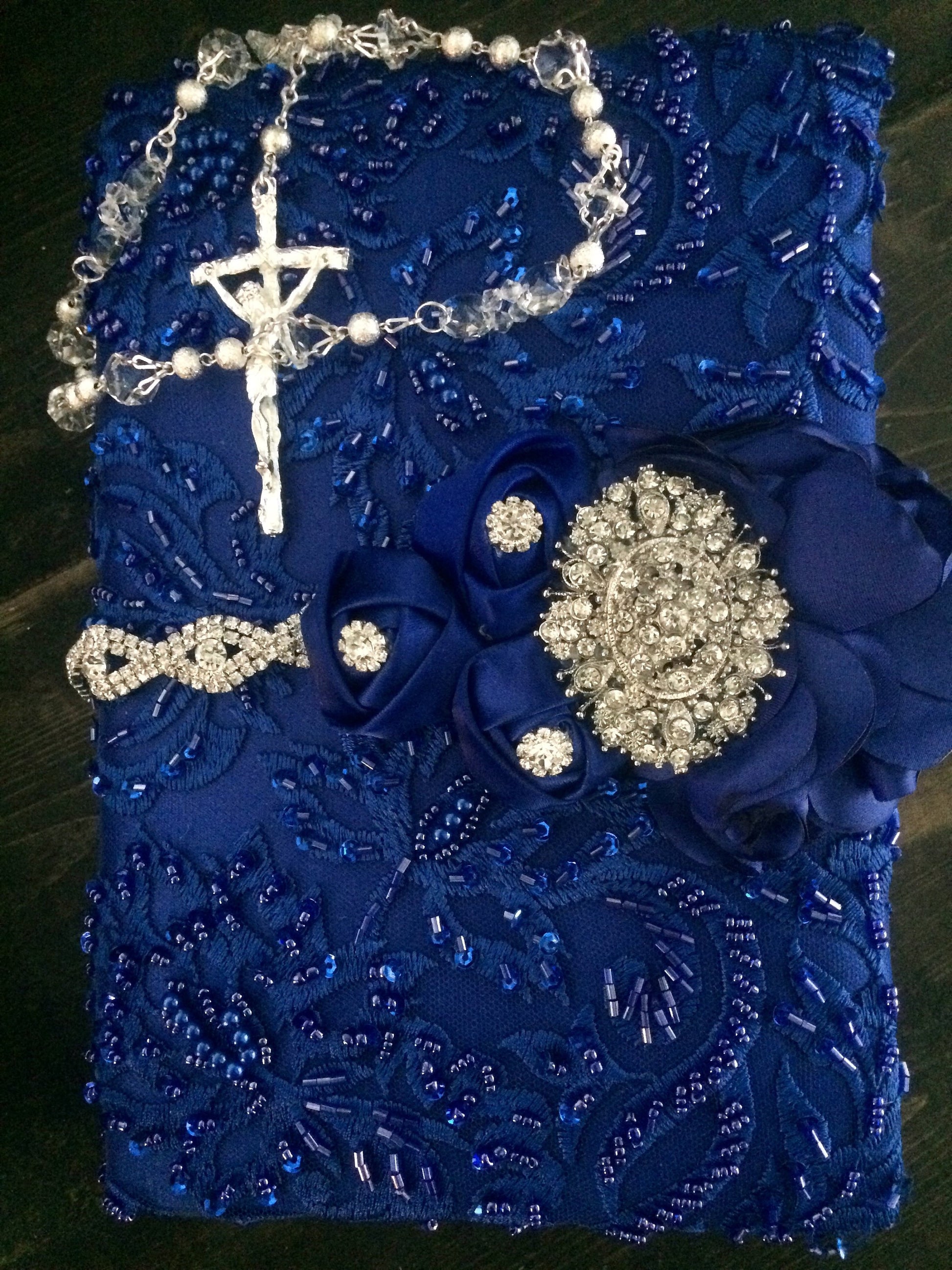 Blue Wedding ceremony royal blue bible, wedding lace royal blue bible, blue wedding catholic Lace Wedding bible and Rosary