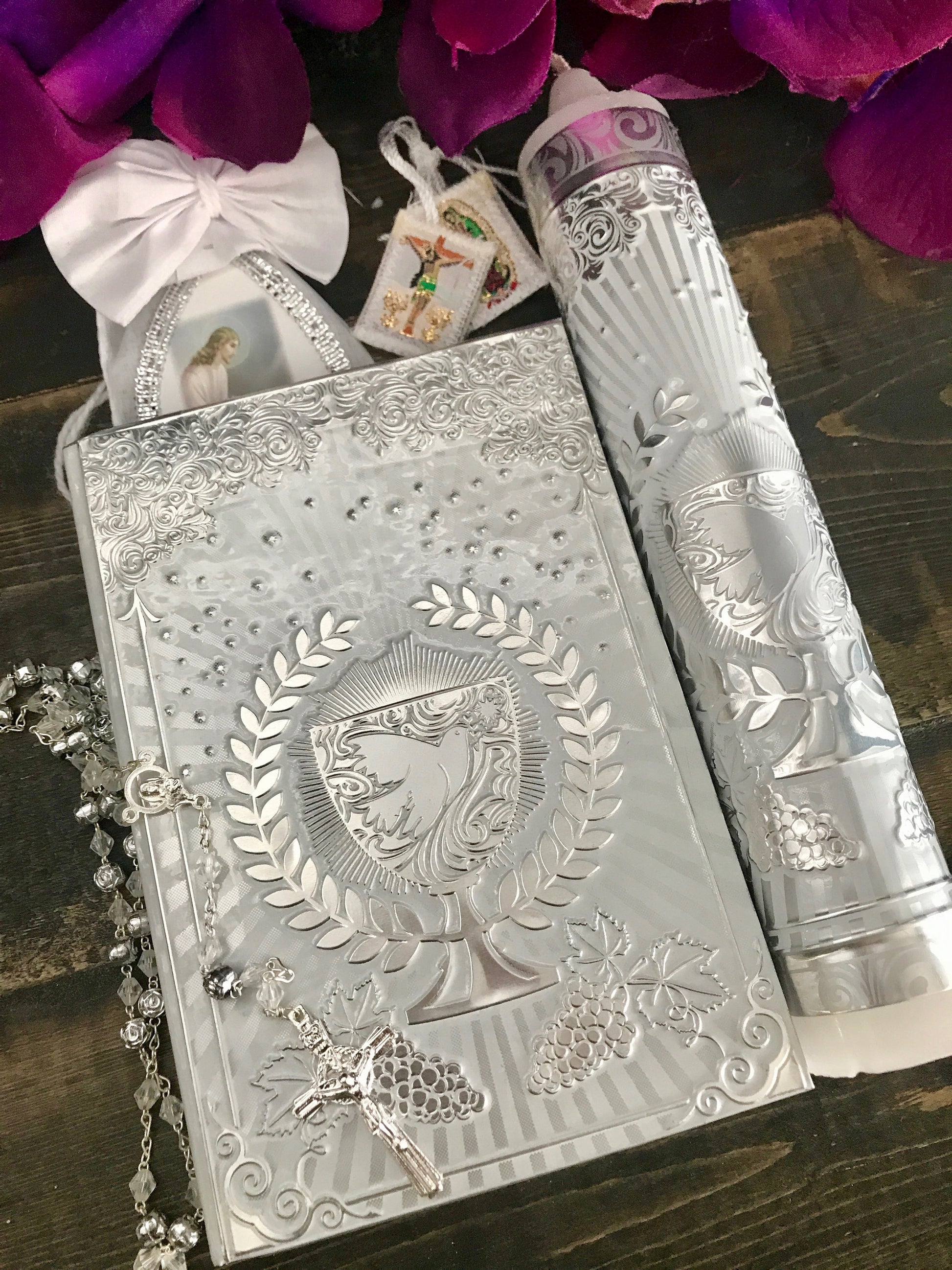 communion candle, Communion Bible, catholic bible communion, confirmation candle set, candle, scapular, and rosary