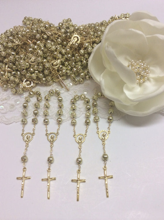 Rosary mini 25 pcs Pearl Decade Rosaries/Mini Rosaries/First communion favors Bautizo 25pz/Mini Pearl Rosary Baptism Favors 25 pcs