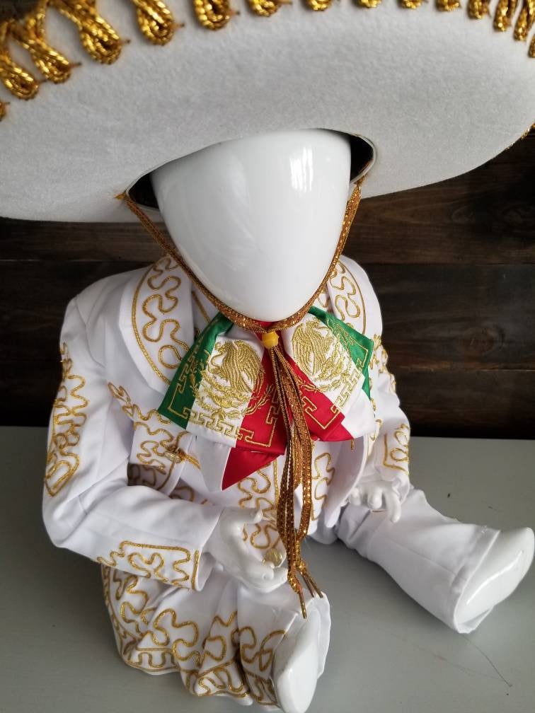 White Gold Baby Mariachi Boy, Traje Charro blanco & oro Embroidery Suit, Traditional mariachi christening, mariachi baptism